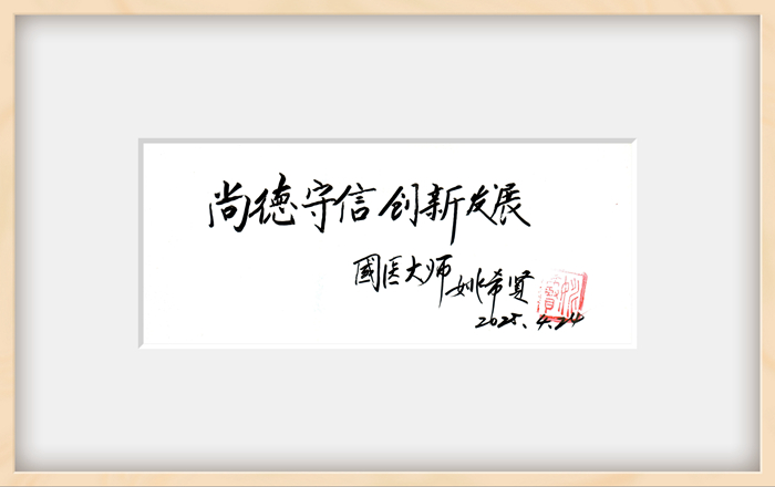 食藥同源既是源于中醫理論,又是兩者都應具備的初心、匠心和社會責任心。姚老的寄語和題詞,滿懷對公司過往成績的肯定,更是對未來發展的美好祝愿和殷切期許,激勵我們在堅守初心、守正創新的路上弘揚道德文化,發揚工匠精神,踐行社會主義核心價值觀,爭當新時代文明風尚傳播者、踐行者,實現高質量發展。